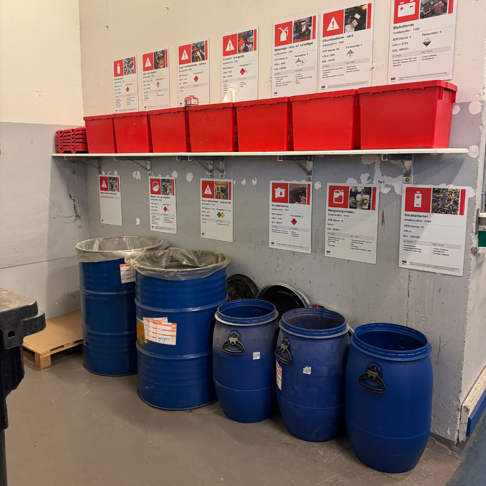 Oppbevaring av farlig avfall på avfallsrommet. Foto: Norsk Gjenvinning.