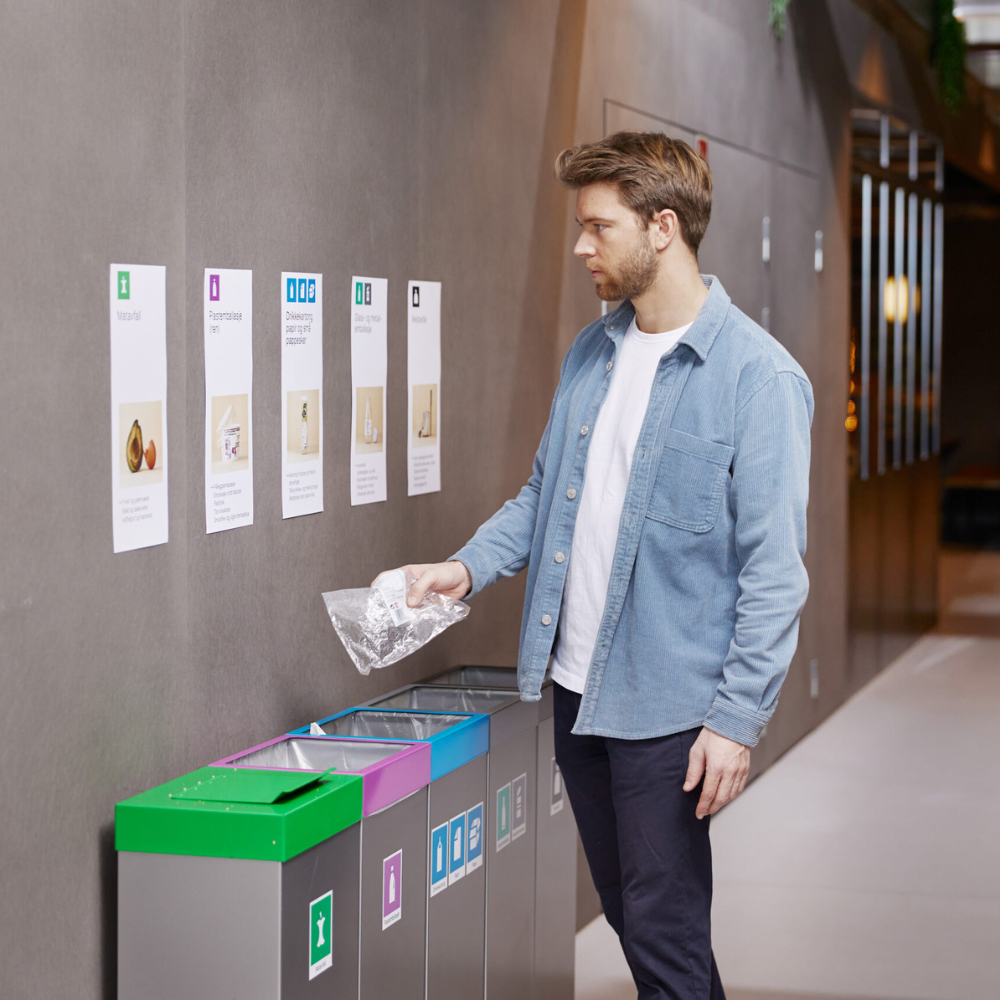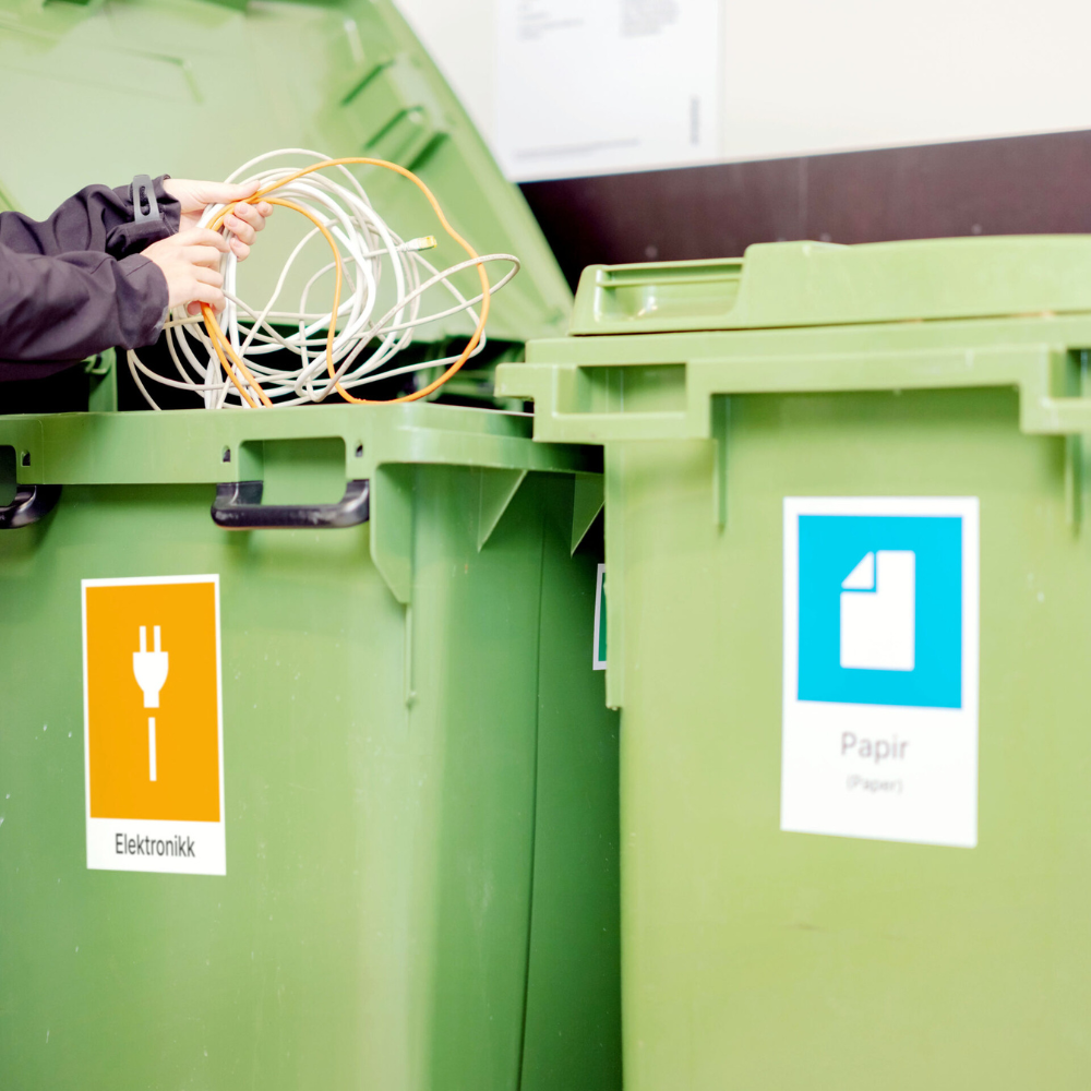 Eksempel på kildesortering i avfallsrommet. Foto: Norsk Gjenvinning.