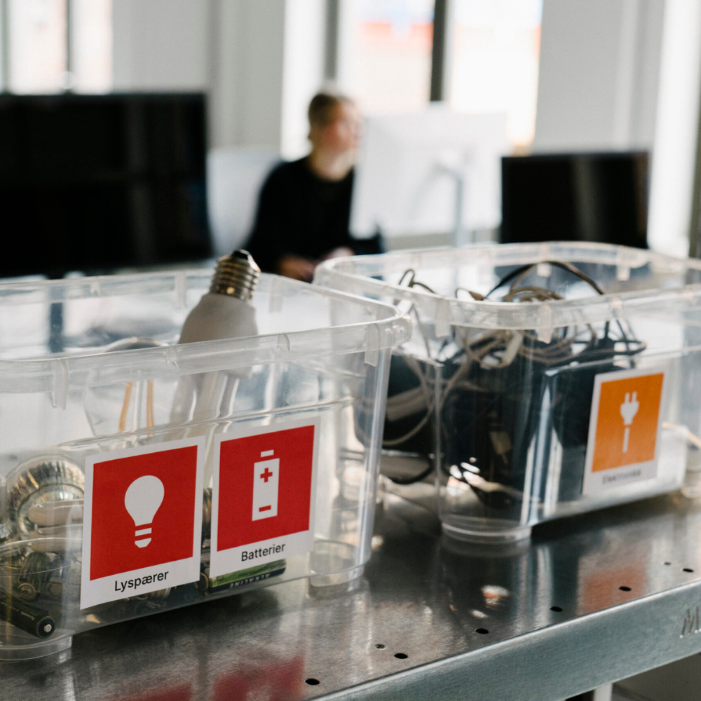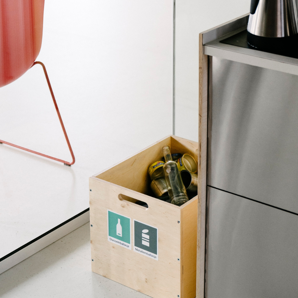 Skuffer- og skapløsning merket med Sorteringsmerker. Foto: Norsk Gjenvinning