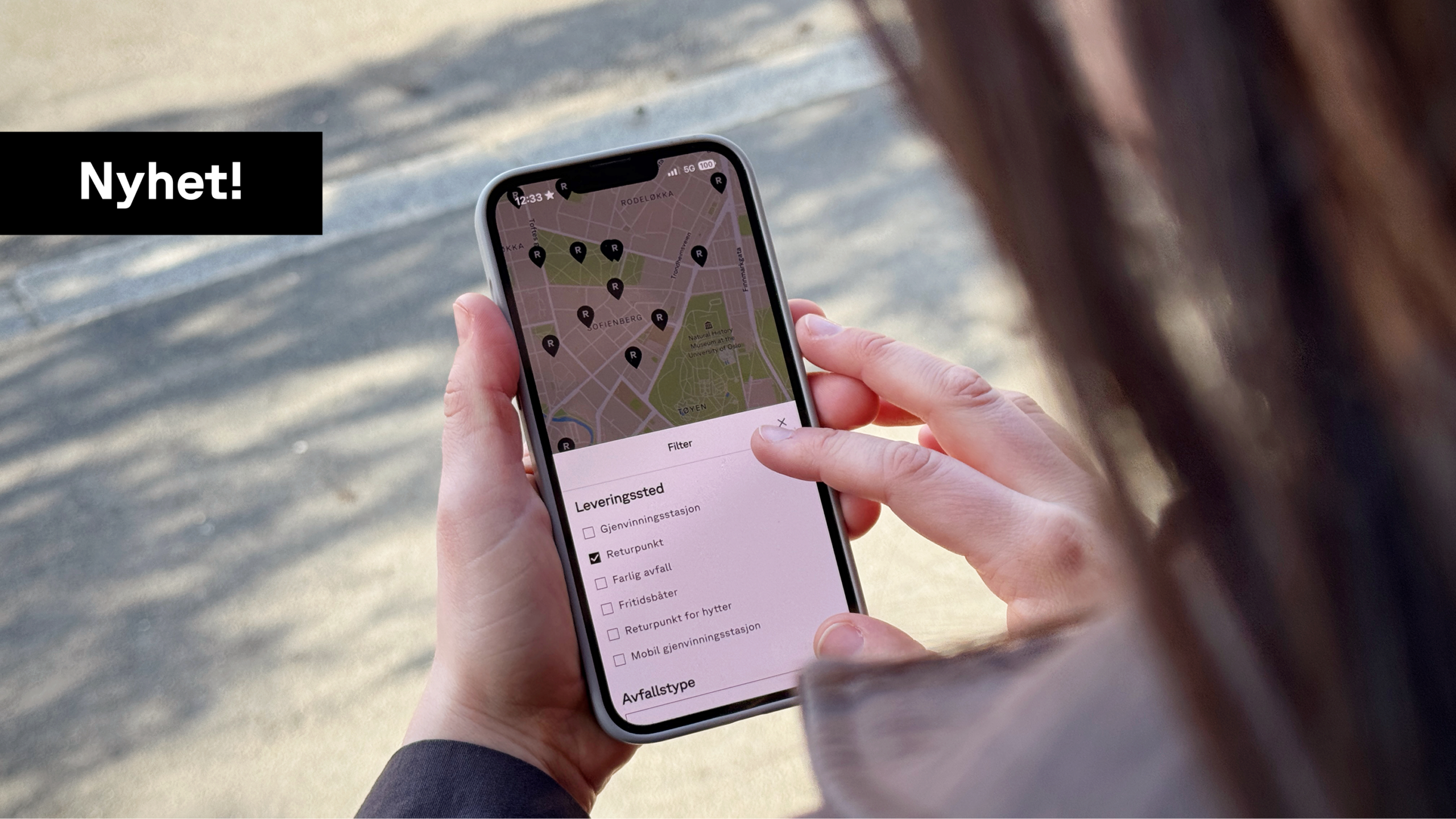 I tillegg til at appen gir deg svar på hvordan du kildesorterer, finner du nå også en kartoversikt som viser hvor du kan levere avfall over hele landet.